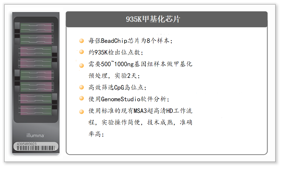 1、全面的基因組覆蓋范圍:檢測> 935,000個CpG位點,全面覆蓋CpG島、啟動子、編碼區及增強子全基因組分析,無需預先設計特異性探針能夠檢測未知基因;