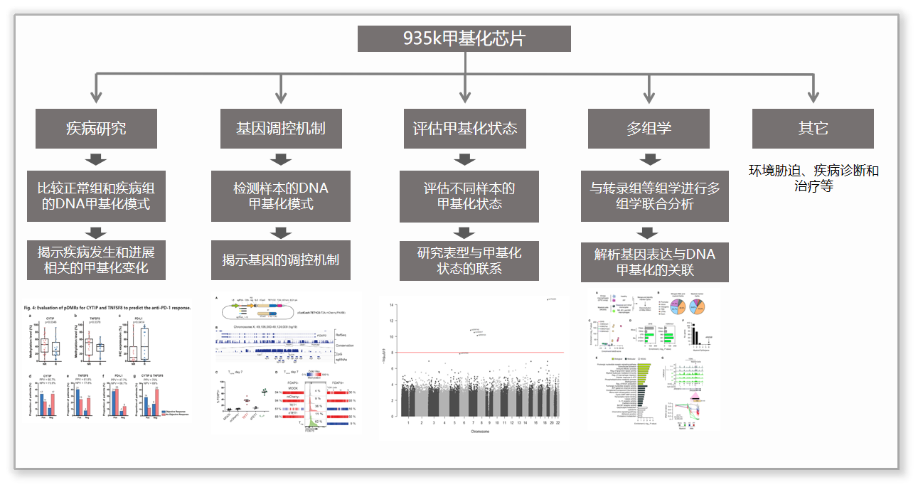 935K芯片可檢測人全基因組超過 935,000 個 CpG 位點的甲基化狀態,去除了 EPICV1.0 性能不佳的探針,新增的 186,000 個 CpG 靶向增強子和超級增強子、更多 CTCF 結合位點、CNV 檢測區域、EPIC v1.0 覆蓋不足的CpG 島以及常見 癌癥驅動突變,是更適合于表觀基因組全關聯分析研究(EWAS)的一款芯片。