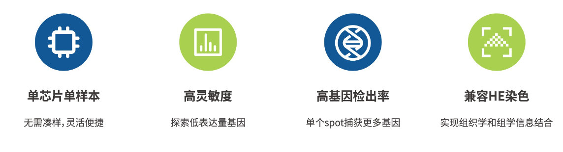 技術(shù)原理 DynaSpatial一張捕獲芯片對應(yīng)一個捕獲區(qū)域,每個捕獲區(qū)域大小為5×5mm,并密集分布2500個50μm直徑的捕獲位點,相鄰捕獲位點的間距50μm,通過每個位點修飾上的barcode序列確定物理坐標位置,利用poly (dT)來捕獲組織切片透化出來的mRNA,從而進行建庫測序和空間基因表達數(shù)據(jù)生成。