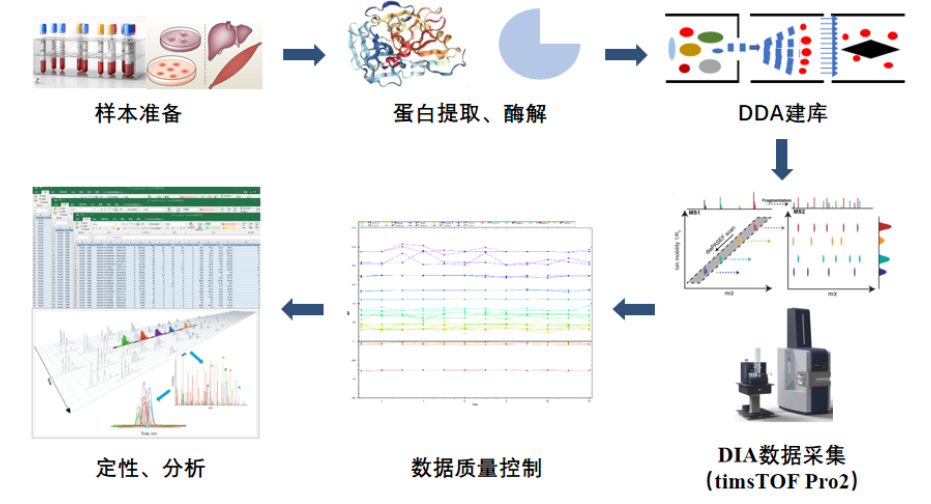 數據非依賴型的掃描模式 (Data-independent acquisition, DIA) 能夠對復雜樣品中的所有信號進行無偏向性的質譜分析,從而獲得更高的肽段覆蓋率。將質譜整個全掃描范圍分為若干個窗口,高速、循環地對每個窗口中的所有離子進行選擇、碎裂、檢測,從而無遺漏、無差異地獲得樣本中所有離子的碎片信息。4D-DIA基于timsTOF Pro2質譜儀,在傳統三維數據(保留時間、質荷比、離子強度)的基礎上增加了第四個維度——離子淌度信息。4D-DIA能夠全面提升蛋白質鑒定能力、檢測靈敏度和數據完整性。